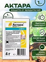- Эффективен против более 20 видов вредителей: тля, клещи, белокрылка, клопы, листовёртки, пилильщики, златогузки и др.